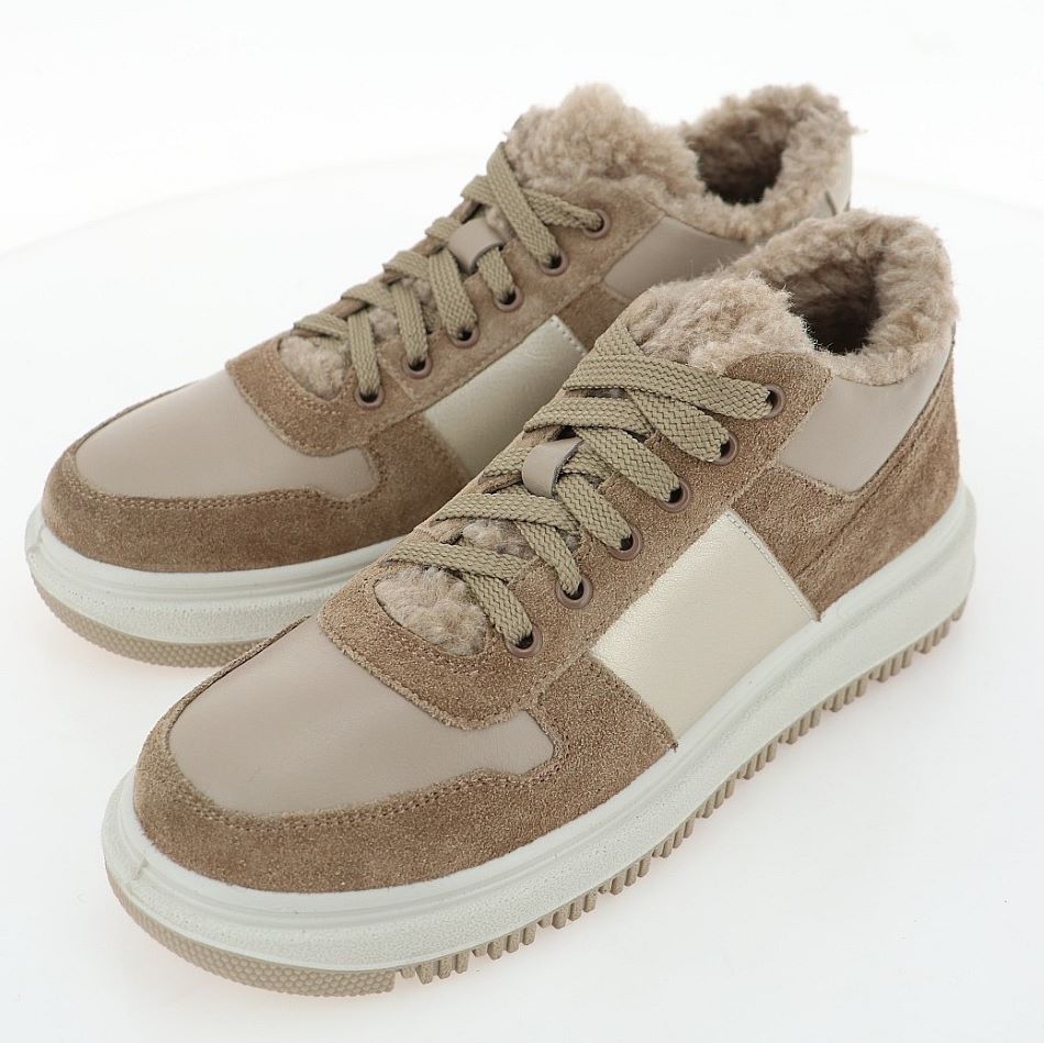 Кеды женские JAZZ молочного цвета с бежевой отделкой. Сочетание натуральной кожи и спилка делает пару легкой и комфортной, она идеально подходит на каждый день. Шнуровка регулирует посадку.